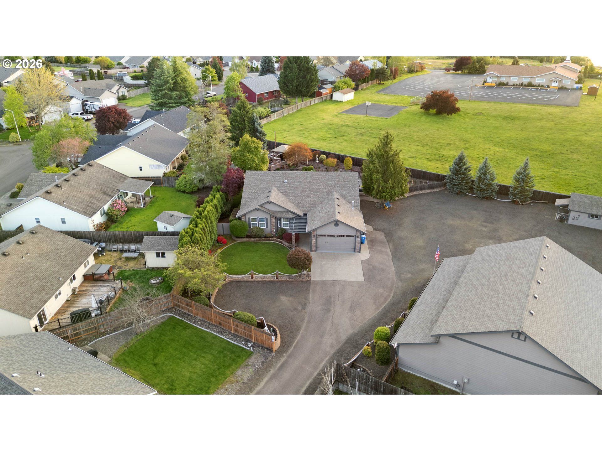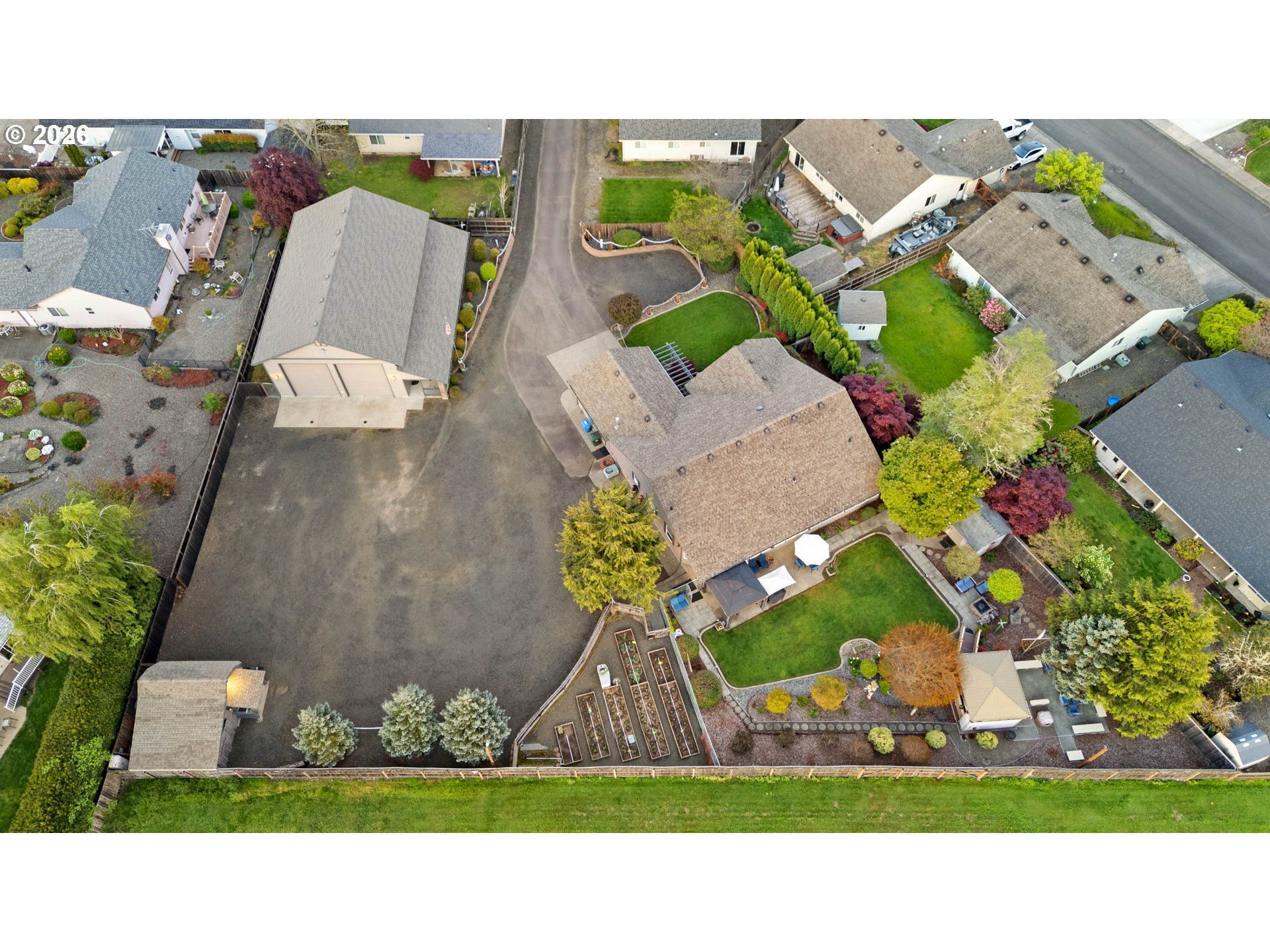 Hard-to-find Sutherlin property in a highly desired neighborhood, on an oversized lot w/RV parking & fully finished shop. This exceptional home, built in 2000, offers 4 bedrooms, 2 baths, & powder room/laundry room combo. The main living area offers tile floors throughout, built-in audio, vaulted ceilings, & flows to the dining space w/custom built-in cabinetry & wine rack. The kitchen provides an optimal layout w/custom cherry wood cabinets, granite counters, tile floors, stainless steel appliances, commercial vent fan, tile backsplash, breakfast nook, & built-in trash compactor. The primary suite is spacious w/vaulted ceiling, new laminate floors, generous walk-in closet, & access to enclosed patio/exercise space. The en-suite features jetted tub, custom tile shower, & updated finishes. Dedicated office space or possible 4th bedroom w/custom built-in desk & new laminate floor. Guest bedrooms also has new laminate floors & updated main bathroom w/tile floors, custom vanity w/vessel sink, & custom tile shower. 384 sqft enclosed patio extends the living space for year-round use w/tile floors, heat/cool, built-in bar & TV, w/built-in audio. Impeccably maintained exterior w/diverse landscape, concrete patio w/gazebo, irrigation, large garden space w/timer-controlled irrigation, garden shed, & fire pit. The custom tiki hut is a standout w/electric, ceiling fan, TV hookups, & gas fire pit. 3 separate RV hookups & extensive exterior lighting. The spectacular shop is approx. 50x34 & fully finished w/RV garage, 14ft insulated roll-up doors, its own 200-amp service, built-in cabinetry, mini fridge, & office area. Additional finished storage & separate insulated shed w/heat, A/C, & its own 125-amp service. Additional features include an attached garage, security system w/10 cameras, gas heat, central air w/A/C, new interior paint in 2024, & upgraded insulation. A well-rounded property offering pride of ownership, optimal functionality, & difficult to find shop space.