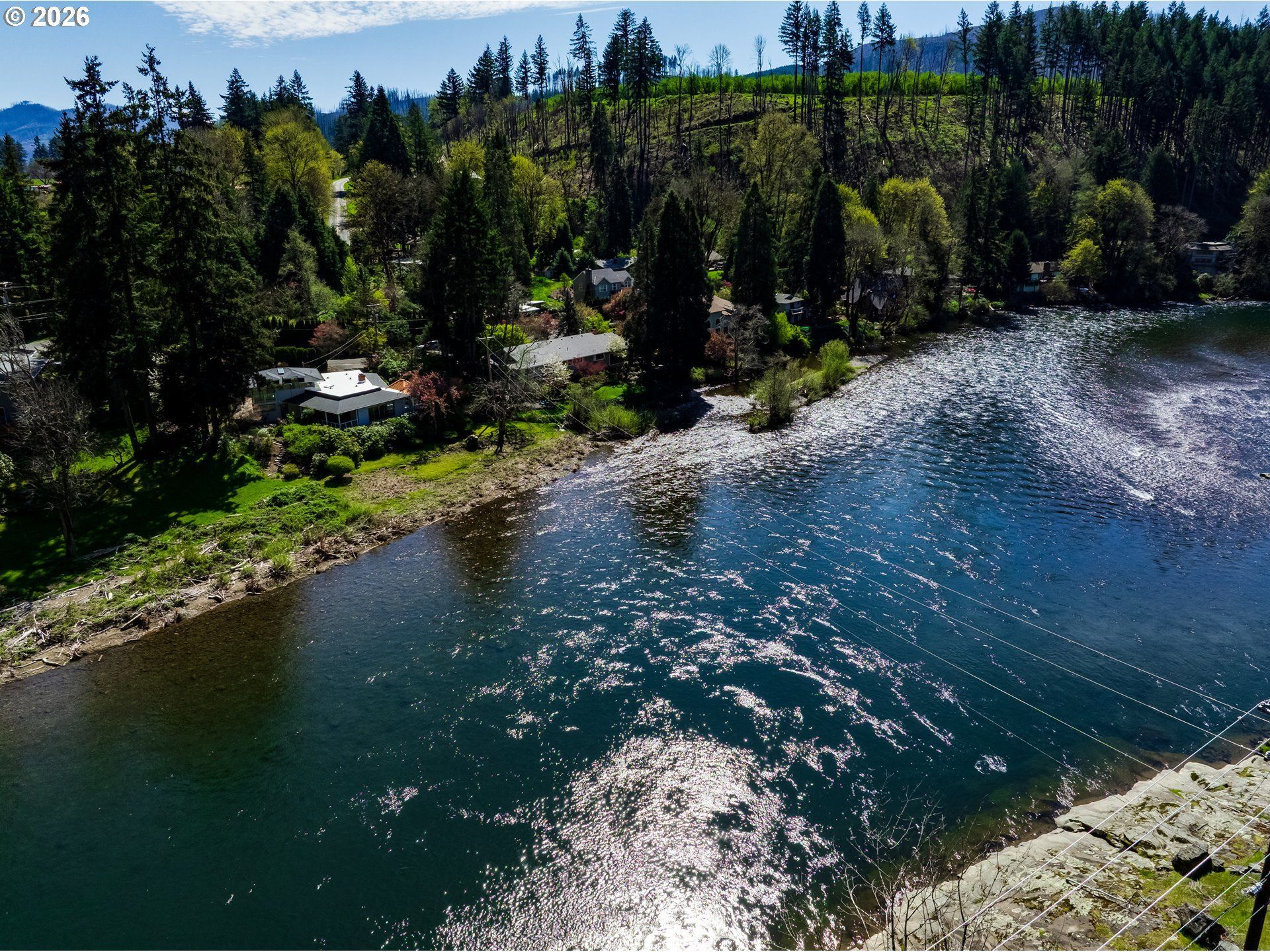 Nestled along the McKenzie River, this exceptional property offers stunning water frontage, a serene creek, and views of a picturesque historic covered bridge. Perched just above the river, the home is perfectly positioned to capture peaceful surroundings and scenic vistas. The main level features a kitchen with skylights, granite countertops, and stainless steel appliances, creating a bright and inviting space. The primary suite includes a walk-in closet and private bathroom, while a second bedroom and a spacious laundry room with ample storage and conveniently located.The expansive living room is just a couple steps down and showcases a dramatic wall of windows, filling the space with natural light and river views. Enjoy cozy evenings by the pellet stove, or relax in the sunroom and adjoining dining area with access to a covered porch-perfect for year-round enjoyment.Upstairs, above the two-car garage, you'll find a large bonus room complete with a closet, skylights, and its own private porch-ideal for guests, a home office, or creative space.A detached shop with living quarters above provides incredible flexibility for hobbies, storage, or additional accommodations. Recent updates include fresh interior paint and new flooring throughout, making this home move-in ready.Experience the beauty and tranquility of riverfront living in this unique McKenzie River retreat.